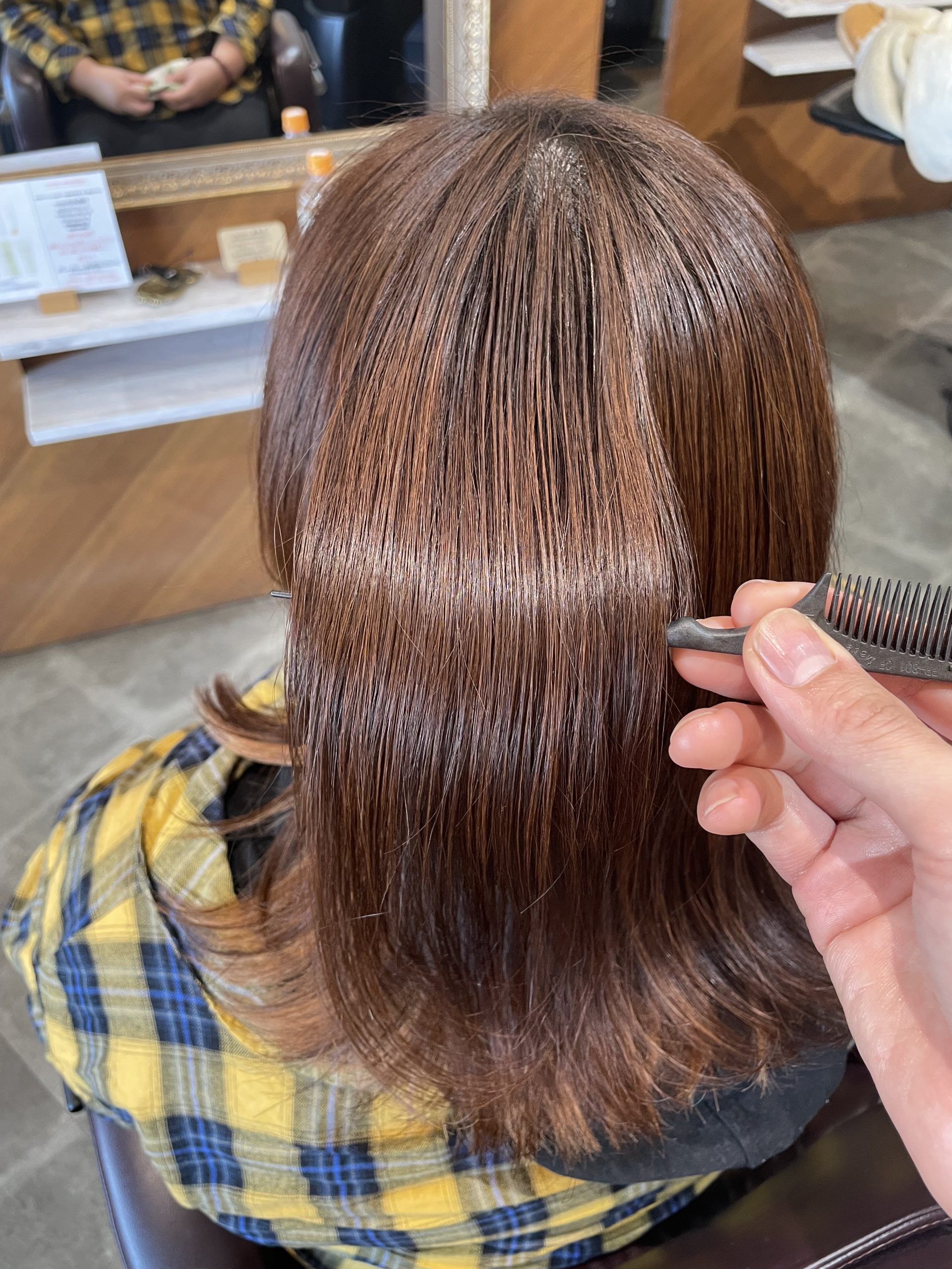 酸性ストレート特有のツヤとなめらか柔らかな仕上がりが特徴です。