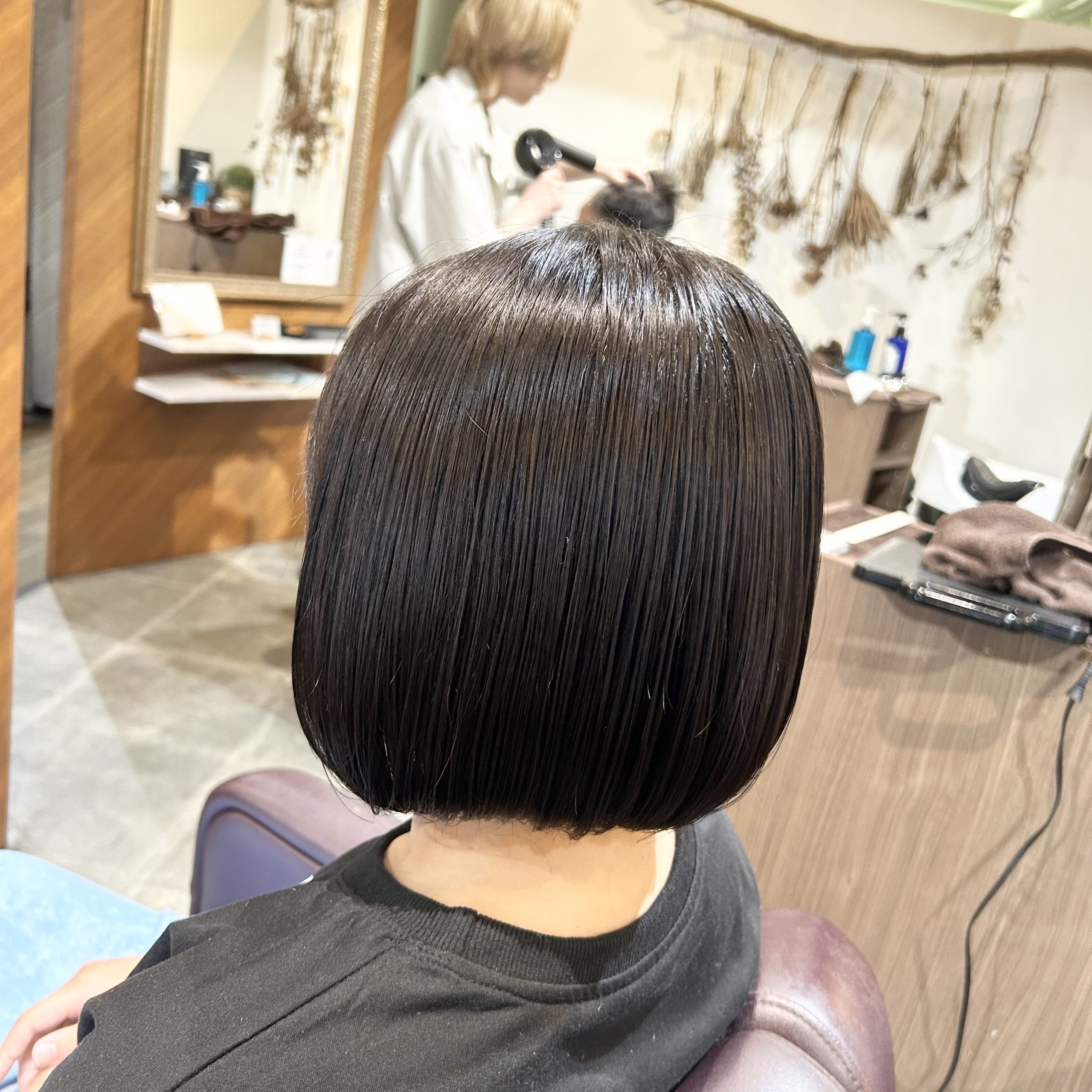 このスタイルなら首元スッキリ、短いので乾かすのも