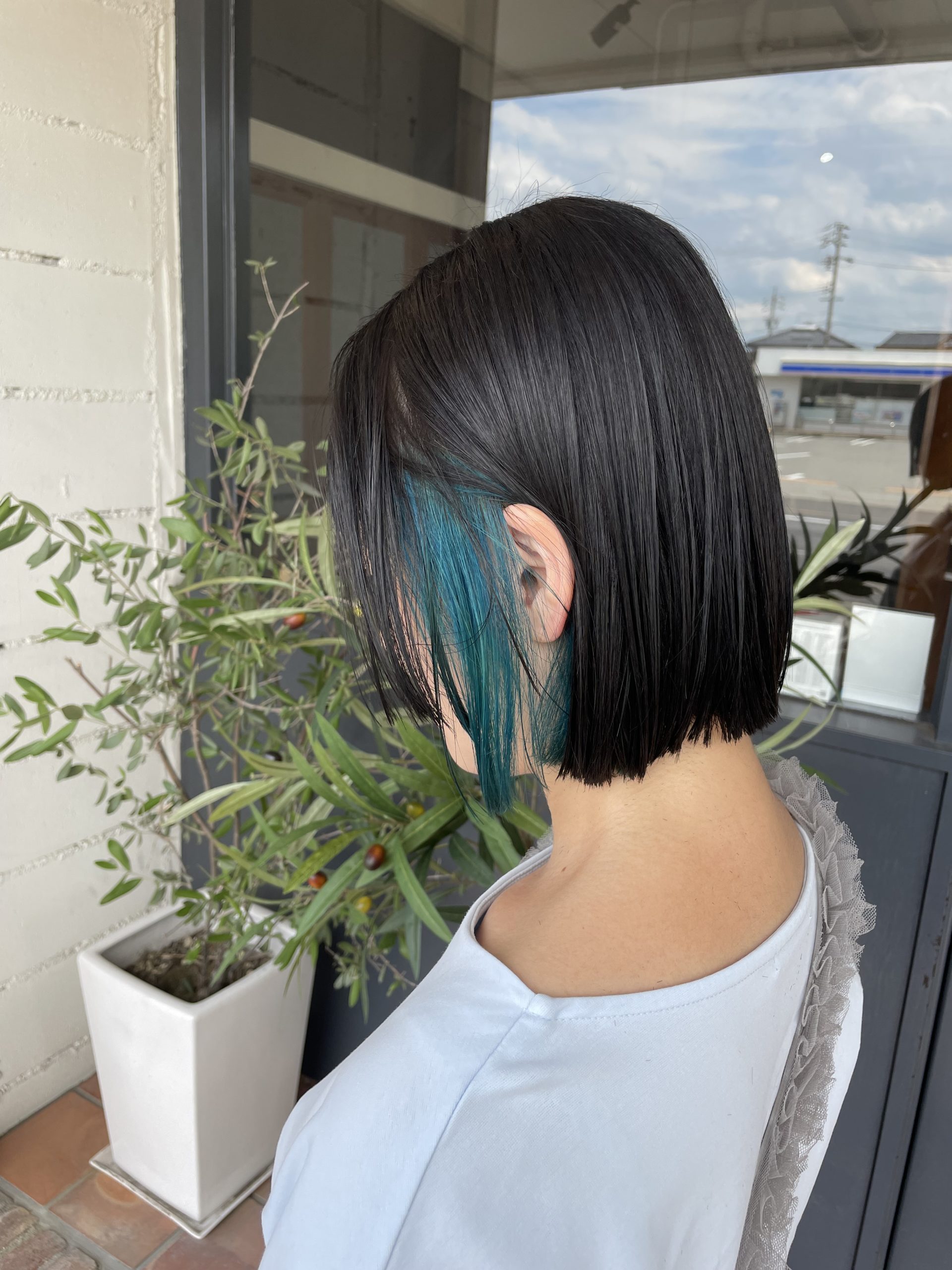 今回はボブスタイルのインナーカラー(ターコイズブルー)