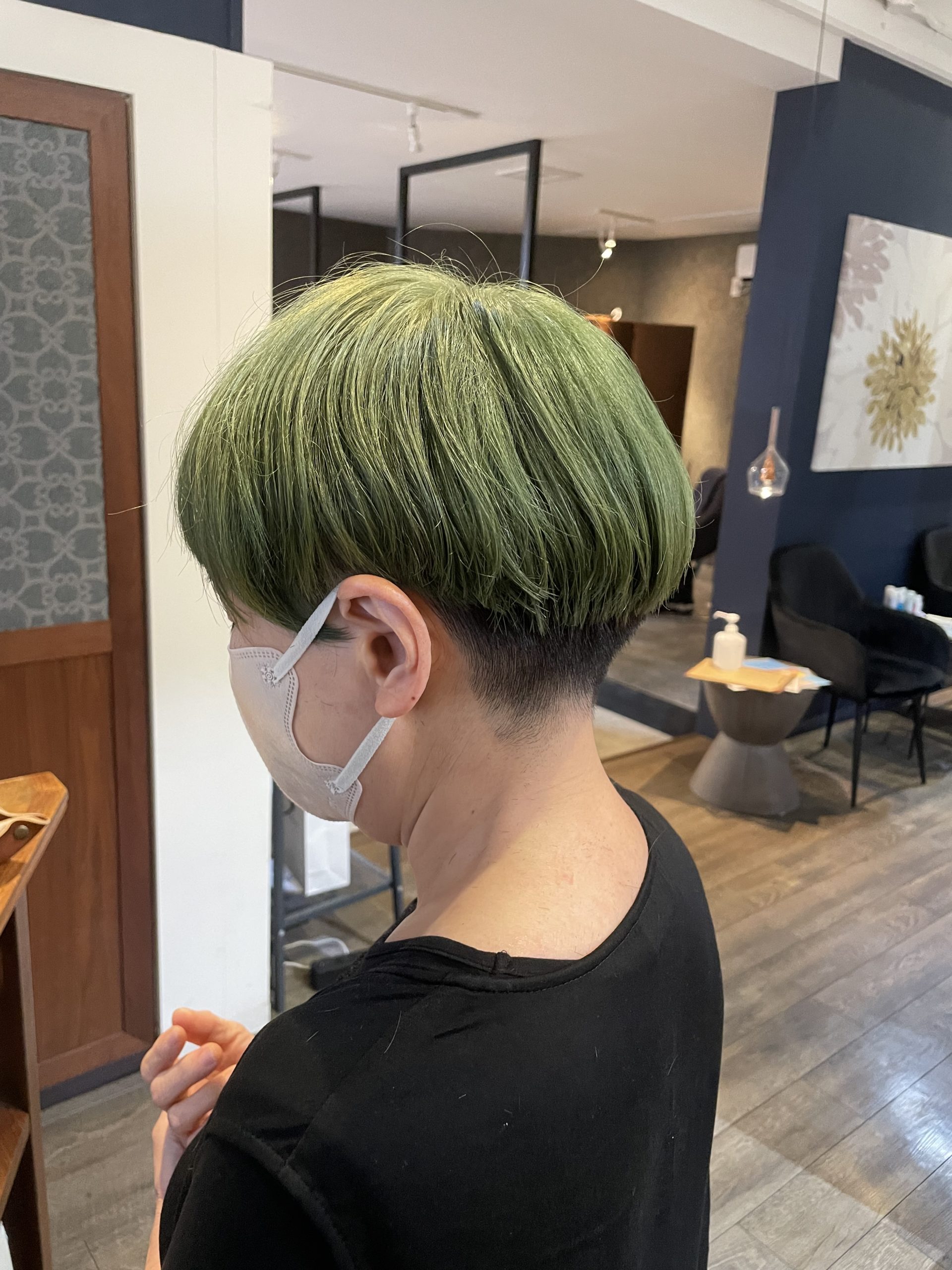 ケアブリーチでつくるグリーン×刈り上げマッシュ